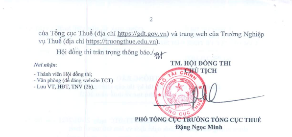 – Thông tin về số báo danh, phòng thi, địa điểm thi cụ thể Hội đồng thi sẽ thông báo vào ngày 19/05/2023 trên trang web của Tổng cục Thuế (https://gdt.gov.vn) và trang web của Trường Nghiệp vụ Thuế (https://truongthue.edu.vn).