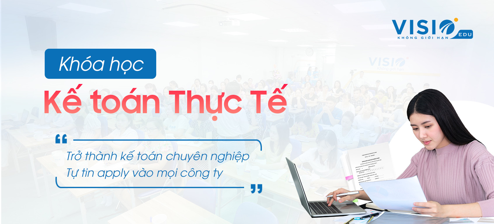 Đừng lo, VisioEdu sẽ giúp bạn có ngay 1 năm kinh nghiệm làm kế toán chỉ sau 1 khóa học Kế Toán Thực Tế. Học xong làm được việc ngay.