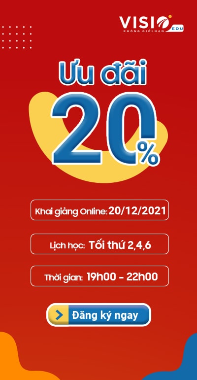 • Giảm 5% đối với học viên cũ tại VisioEdu (Các ưu đãi được cộng dồn)